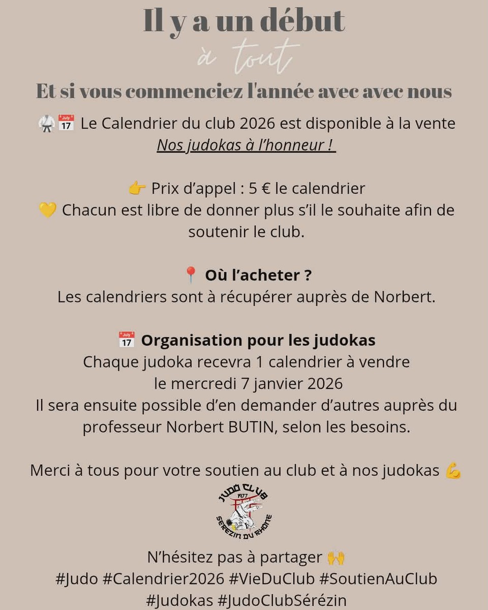 #Judo #Calendrier2026 #VieDuClub #SoutienAuClub